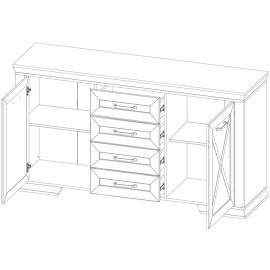 Особенности комода. Компактный, но вместительный: два отделения с распашными дверцами и четыре выдвижных ящика. За каждой дверцей – отделение, поделенное прочной полкой. Качественная и износостойкая фурнитура гарантируют надежность конструкции.