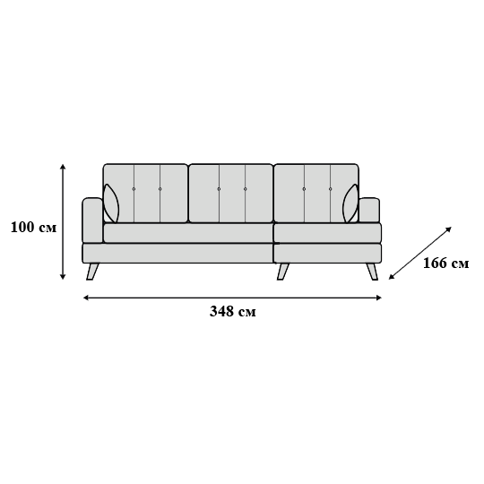 Ширина мм:3480 Высота мм:1000 Глубина мм:1660 Спальное место:2920*1500 Механизм раскладывания дивана:Нет Ткань :Шеннил Vikont 4 Бренд:OSHN Group