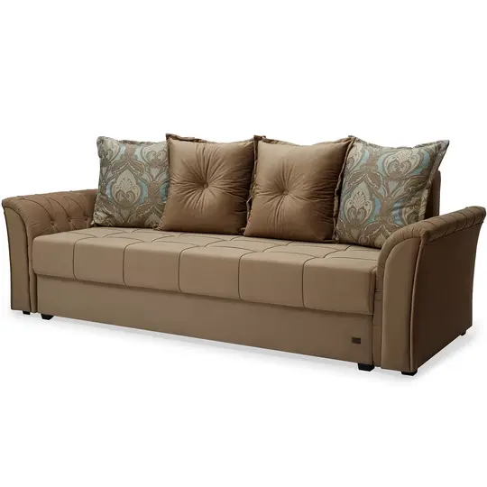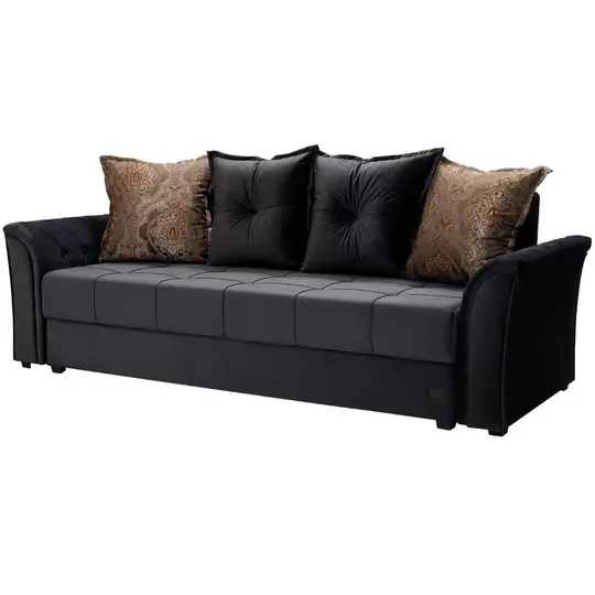 Заманчиво уютный диван-кровать Париж сочетает стильный дизайн с возможностью трансформироваться в удобное спальное место. Элегантный вид модели придают контрастные акценты: декоративные пуговицы на боковинах и подушках спинки, а также утяжки-пике на сиденье дивана.