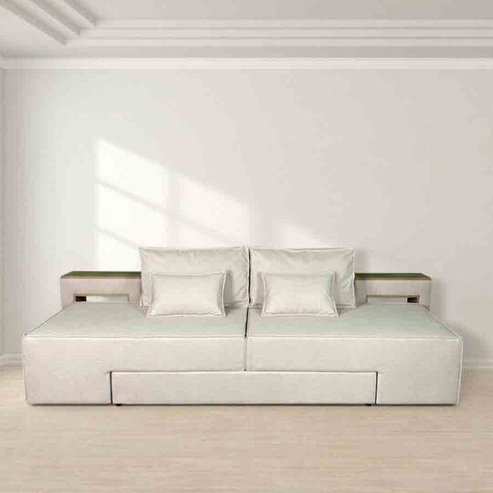 Ширина мм:2390 Высота мм:800 Глубина мм:1590 Цвет:бежевый Спальное место:1630*2040 Конструкция:Трансформер Механизм раскладывания дивана:Трансформер Назначение:Гостевой вариант Ткань :3 категория ткани Стиль:Современные Каркас:Дерево Матрас дивана:Независимый пружинный блок Съемный чехол:Нет Короб для белья:Нет Гарантия:12 месяцев Бренд:Алина-мебель