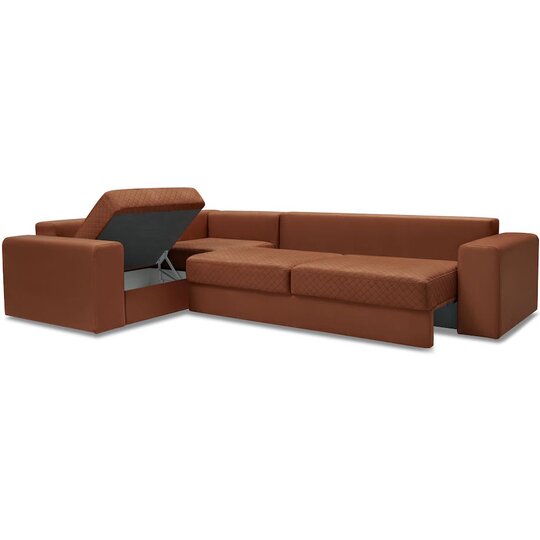 Угловой диван Даллас - данная модель добавляет в любой интерьер оттенок роскоши, и комфорта,  а удобный и простой в использовании механизм трансформации, позволяет за считанные минуты подготовить диван для сна, застелив солидных размеров  спальное место  постельным бельём, для  хранения которого диван оснащён,   двумя бельевыми коробами (основной под сиденьем дивана, ещё один в кресле). Наполнитель ППУ полностью гипоаллергенен. Эта способность имеет важное значение для тех, кто склонен к аллергии. Данный наполнитель широко используется из-за уплотненности, это свойство придает мягкость и эластичность изделию,  В качестве же основного наполнителя используется блок независимых пружин, которые располагаются в отдельных матерчатых чехлах, обеспечивая тем самым автономную работу пружин и их сжатие независимо от соседних. Наполнитель с независимым блоком позволяет изделию, подстраиваться под контуры тела человека, гарантируя точечную поддержку. Изделия с БНП обеспечивают ортопедический эффект и естественное положение позвоночника (БНП оснащены все модули дивана, включая угловой сегмент).    комбинированный каркас, который сочетает элементы из натурального дерева, и фанеры обеспечивает высокую прочность, и долговечность изделия,   Используемая для данной модели ткань Замша имеет целый ряд достоинств, однородность окраса , долговечность и износостойкость, устойчивость к выцветанию, бархатистая и мягкая поверхность приятна на ощупь,  тефлоновое покрытие препятствует проникновению грязи внутрь полотна, и не накапливает статическое электричество, ткань обладает устойчивостью к истиранию.