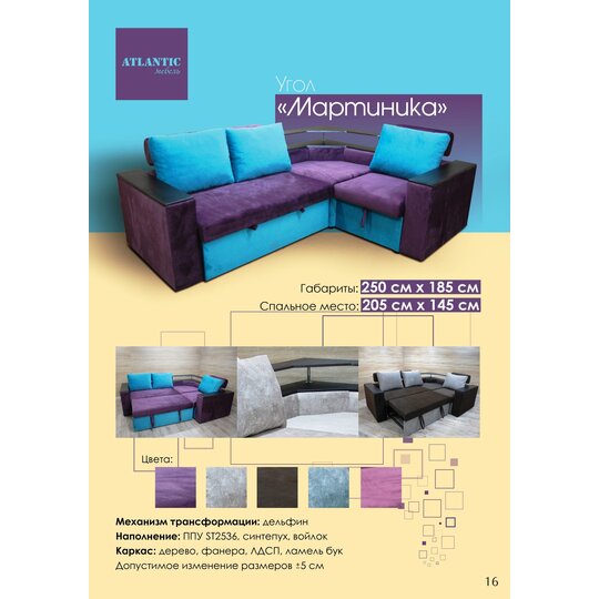 Угловой диван Мартиника предназначен для гостиных комнат, сочетая в себе функциональность и практичность, причем своим стилем дополняет дизайн Вашего интерьера. Мягкий диван сочетает в себе качество мебели как для приема гостей так и для домашнего уютного отдыха.