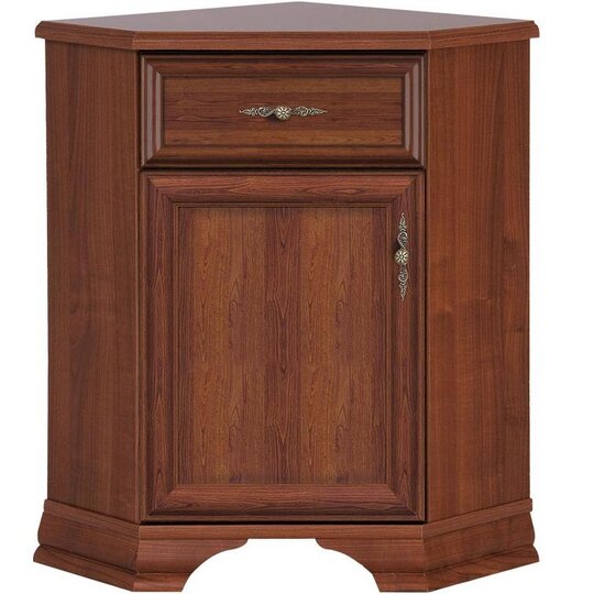 Угловая тумба Kentaki BRW – удобная и функциональная универсальная мебель, с помощью которой можно целесообразно и с пользой использовать все имеющееся пространство. Особенно удобно это для маленьких помещений. Выполненная в классическом стиле тумба прекрасно подойдет к любому интерьеру, гармонично дополнив его собой.