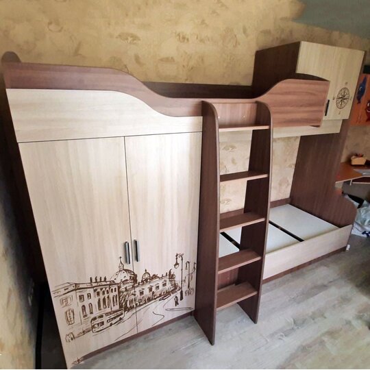 Клиент готовил комнату к 1 сентября и решил двухъярусную кровать Город в комнату фабрики SV-Мебель. Успел взять участие в летней акции и получил скидку 7%. Заказ выполнили оперативно со сборкой у клиента. Сотрудники нашей компании в очередной раз отметили качество материалов и фурнитуры производителя SV-Мебель при сборке. Также была предоставлена услуга подъема мебели и бесплатная доставка.