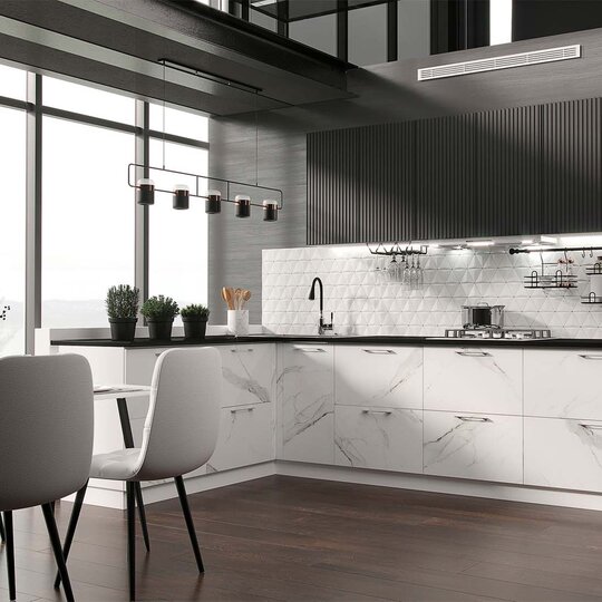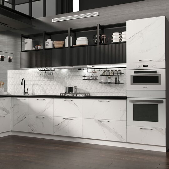 • В комплектации гарнитура по умолчанию отсутствуют ручки: в качестве дополнительной опции вы можете заказать механизм открывания «push-to-open» или ручки из ассортимента фабрики на ваш вкус.