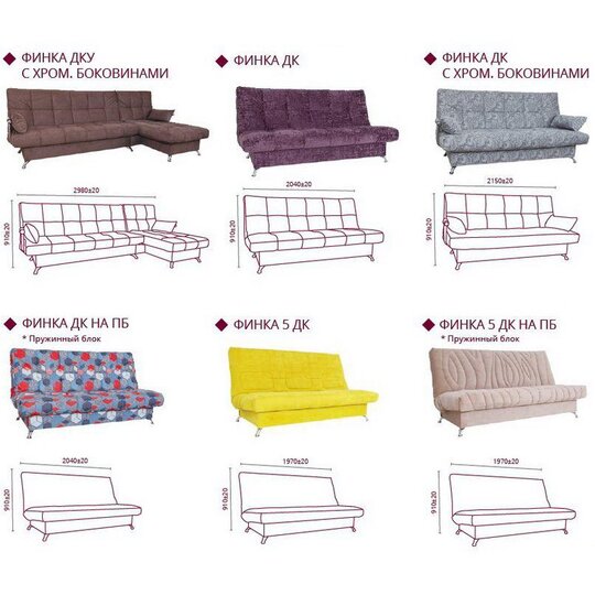 «Финка» - современный, простой и удобный, компактный диван для отдыха и повседневного сна с условно-съемными чехлами и просторным ящиком для белья. Отлично зарекомендовавший себя молодежный вариант. Механизм трансформации «Книга» (Клик-кляк) имеет три положения раскладки спинки: диван разложен (спальное место),  сидя (сложен полностью), полулежа (спинка фиксируется по углом 45 град, для комфортного отдыха).