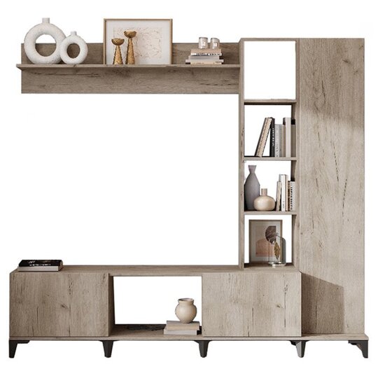 Лаконичная и функциональная гостиная Аурелия украсит интерьер гостиной и приятно удивит своей практичностью. Стенка оснащена необходимыми элементами: закрытыми и открытыми полками, нишами, в центре находиться ниша под телевизор.