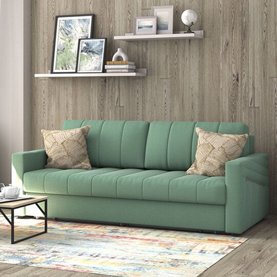 В основе дивана металлокаркас, который гарантирует долгий срок службы, неизменность геометрии дивана и отсутствие скрипов и неровностей. Механизм трансформации - еврокнижка - один из самых надежных и простых, обеспечивает легкость раскладывания, а матрас на основе блока независимых пружин дарит комфортный сон.