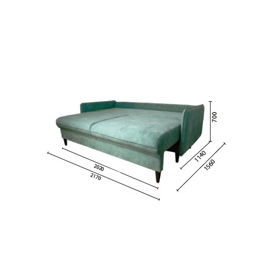 Ширина мм:2170 Высота мм:700 Глубина мм:1560 Цвет:зеленый Спальное место:1500*2000 Механизм раскладывания дивана:Еврокнижка Ткань :1 категория ткани Гарантия:12 месяцев Бренд:Divanovv
