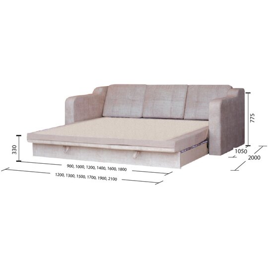 Ширина мм:1900 Высота мм:775 Глубина мм:1050 Цвет:Серый Спальное место:1600*2000 Механизм раскладывания дивана:Перекидной матрас Ткань :1 категория ткани Гарантия:12 месяцев Бренд:Divanovv