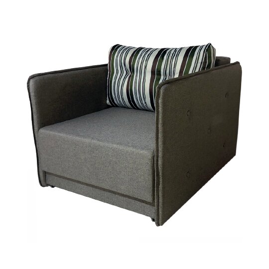 Ширина мм:810 Высота мм:920 Глубина мм:1100 Цвет:Серый Спальное место:750*2000 Механизм раскладывания дивана:Выкатной Ткань :1 категория ткани Материал корпуса:Дерево Гарантия:12 месяцев Бренд:Divanovv