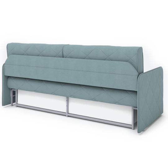 Комфортное и ровное спальное место достигается с помощью матраса с независимым пружинным блоком. Важным преимуществом дивана является съемный чехол. Запатентованная безобивочная технология фиксации мебельного чехла – «бостонский зацеп» – гарантирует идеальное натяжение ткани и облегчает уход за диваном.