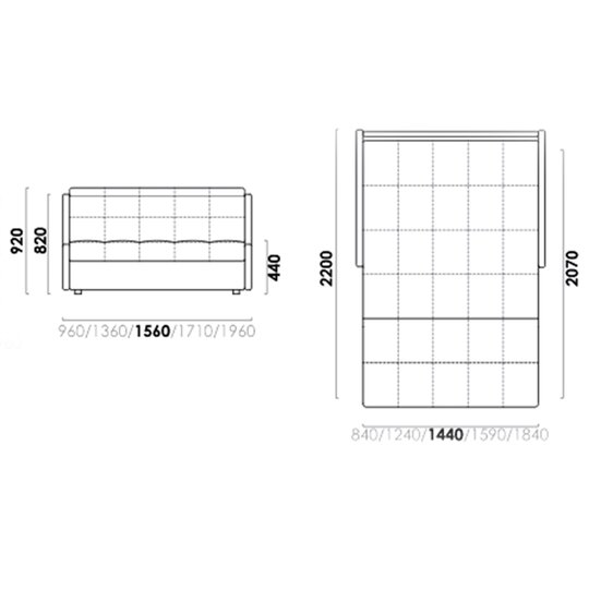 • Спальное место: 840/1240/1440/1590/1840*2040 мм;