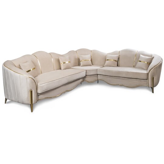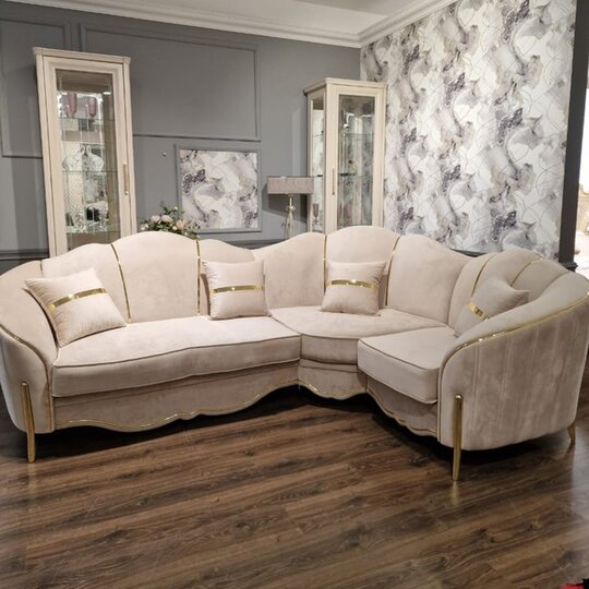 Ширина мм:3070 Высота мм:1050 Глубина мм:2670 Цвет:Бежевый/Золото Спальное место:1400*1900 Ткань :Велюр Гарантия:12 месяцев Бренд:Эра-мебель