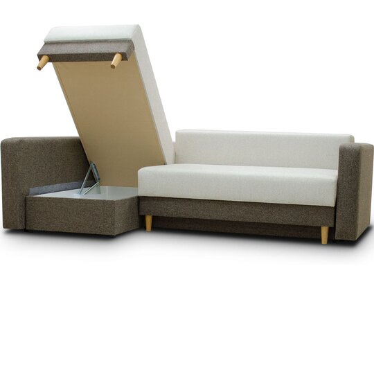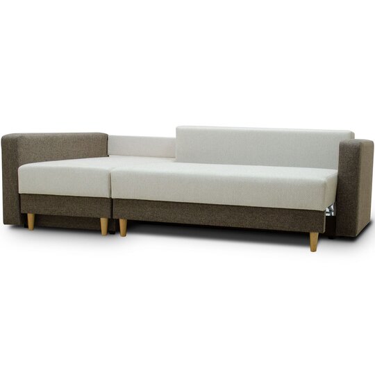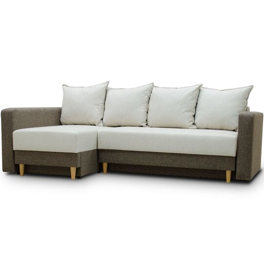 Удобный диван, оснащен механизмом «Тик так», предназначен для ежедневного использования, перешагивая пространство при раскладывании, не повреждает покрытие пола, средняя плотность пенополиуретана в наполнении сохраняет ровное спальное место, данную модель можно использовать, как полноценную кровать, с увеличенным спальным местом, что идеально подойдет для людей с высоким ростом. Наличие двух больших ламинированных бельевых коробов, позволит разместить до трех комплект постельных принадлежностей. Этот диван можно заказать с углом, как на правую, так и на левую сторону, по желанию клиента. Продлённый подлокотник в изголовье фиксирует подушки на время сна, высокая задняя спинка предотвращает соприкосновение со стеной. Опоры выдвижной части дивана, оснащены силиконовыми заклепками, что сохранит покрытие пола при эксплуатации.