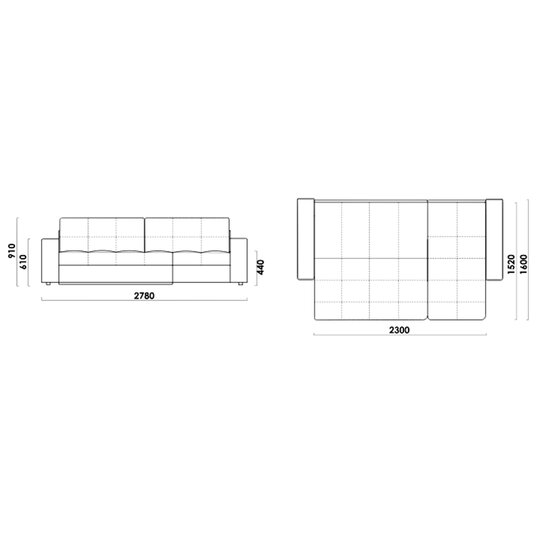 Ширина мм:2780 Высота мм:910 Глубина мм:1600 Спальное место:1520*2300 Механизм раскладывания дивана:Пантограф Ткань :0 категория ткани Материал корпуса:Металл Гарантия:12 месяцев Бренд:Rivalli