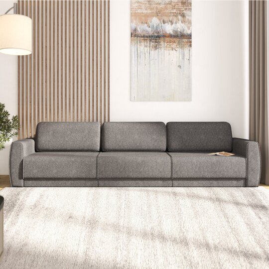 Женева 3S2P / Диван - кровать (еврокнижка) (микровелюр Шейп стоун) исполняется в классическом стиле и спокойных цветах. Модель сочетает в себе простоту и функциональность, но при этом не выглядит громоздко. Она гармонично впишется в пространство, не утяжеляя его.