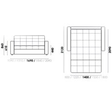 Спальное место: 1200*2070, 1440*2070, 1590*2070, 1800*2070