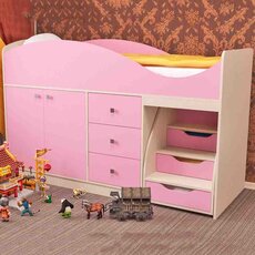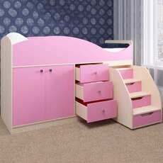 Нередко в каталоге встречаются варианты, где верхний ярус предназначен для ребенка, а нижний представляет собой зону отдыха для взрослого. Также есть менее компактные модели, где кровати расположены перпендикулярно к друг другу: все они доступны к покупке в рассрочку без процентов и переплат.
