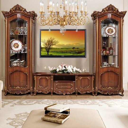 Гостиная считается главной комнатой в квартире или доме, поэтому ее дизайну уделяют основное внимание - ведь это «лицо» вашего дома. Гостиная в классическом стиле выглядит уютно и респектабельно, а ее дополнение в качестве золотого цвета призывает устроиться поудобнее и расслабиться в компании надежных друзей. Гостиная «Элиза» послужит показателем богатства и престижа хозяев дома, выполненная в белом цвете с золотистой отделкой, является самим олицетворением роскоши и богатства. Стоит отметить, что именно такое цветовое сочетание является трендовым в классическом дизайне интерьера.