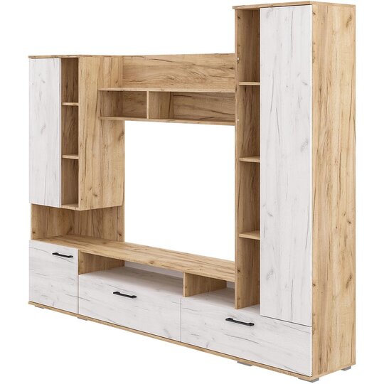 • стеллаж с нишей и 3 полками; распашной шкафчик без ручек на 3 полки;