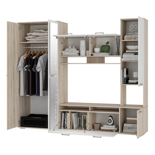 Ширина мм:2300 Высота мм:1940 Глубина мм:440 Цвет:дуб сонома/дуб сонома/белый Материал корпуса:ЛДСП Материал фасадов:ЛДСП Гарантия:12 месяцев Бренд:Мебелони