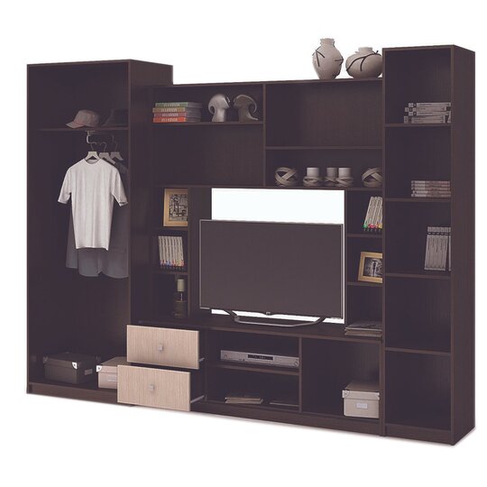 Ширина мм:2700 Высота мм:2124 Глубина мм:468 Цвет:дуб белфорд/венге Материал корпуса:ЛДСП Материал фасадов:ЛДСП Гарантия:12 месяцев Бренд:СтендМебель