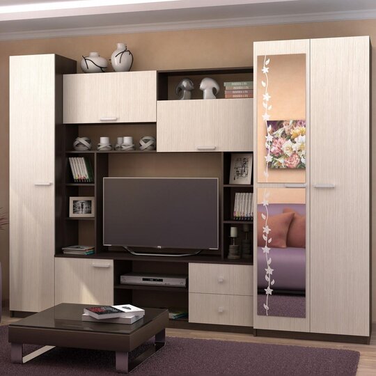 Современный стильный комплект станет удачным интерьерным решением для вашей гостиной. Сочетание светлых и темных природных оттенков помогут оформить привлекательную и практичную обстановку.