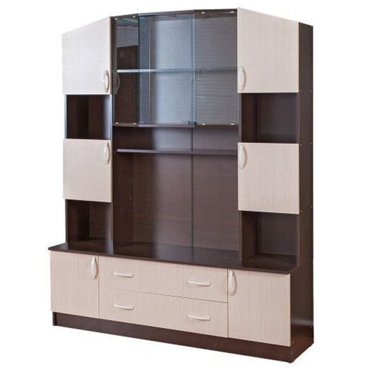 Центральная секция ТВ-301 Макарена поможет со вкусом обустроить уютную и достаточно комфортную гостиную. Открытая ниша предназначена для размещения телевизора для более комфортного просмотра сериалов, фильмов и телепередач. За дверцами со стеклянными вставками можно расположить наборы посуды или дорогие напитки. Шкафы предоставят достаточно места для хранения одежды и белья. В открытых полочках будут отлично смотреться семейные фотографии, интересные книги и оригинальные предметы декора.
