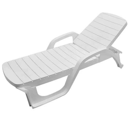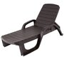 Шезлонг выполнен из пластика с имитацией структуры дерева. Спинка шезлонга имеет 3 наклонных положения для обеспечения максимального комфорта. По бокам два удобных подлокотника. Всё, что нужно для тихой и размеренной деревенской жизни.