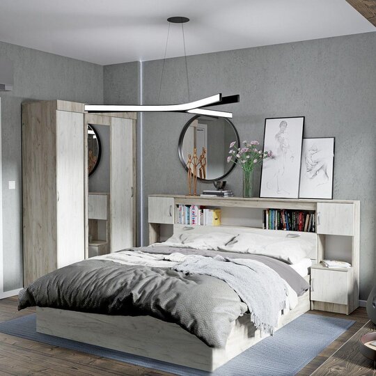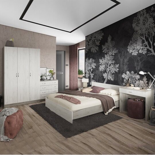 Комплект мебели для спальни Бася  наполнит комнату уютом и теплом, сделав ее самой любимой комнатой в доме. Функциональные элементы, входящие в состав, позволяют создать удобную обстановку. При желании комплект можно дополнить другими элементами серии. Лаконичный гарнитур для оформления современной спальни принесет особое настроения в ваш дом. Спальный гарнитур выгодно подчеркнет обстановку, подарив ей нотки роскоши и уюта. Великолепно подобранное сочетание модулей  принесет в абсолютно каждый интерьер функциональность и изысканность. Классическое исполнение спального гарнитура , выполненного в сочетании контрастных оттенков, понравится любителям простых форм в оформлении интерьера. Комплект гармонично сочетает в себе все необходимые элементы для создания уютной и удобной обстановки в спальне.