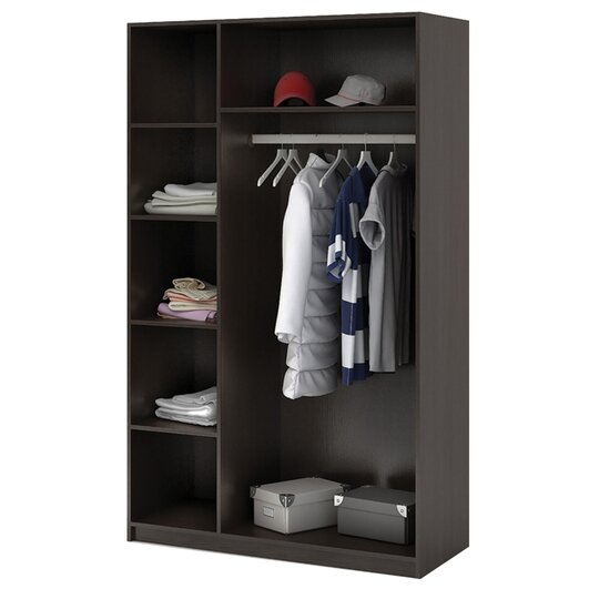 Оригинальный шкаф Бася идеально дополнит вашу спальню. Модель имеет два отделения: с одной стороны за распашными дверями прячется широкая штанга, с другой — полки. В таком шкафу все ваши вещи и обувь будут всегда в порядке и быстром доступе. Такая модель станет полезным элементом в гостиной, спальни, прихожей или детской комнаты.