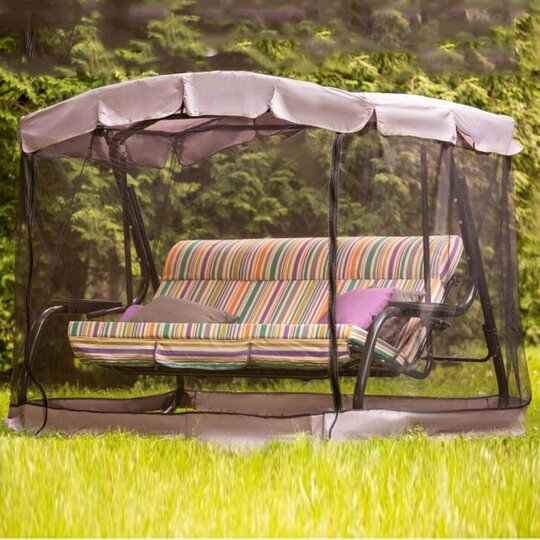 Качели садовые Турин Премиум– простая и удобная модель, предназначена для комфортного отдыха на садовом участке. Каркас выполнен из стальной трубы, диаметром 51 мм. Основание сиденья изготовлено из полипропиленовой ткани, прочной и устойчивой к перепадам температур. Крыша качели накрыта тканью полиэстер с водоотталкивающей отделкой. Модель представлена с механизмом наклона, а также москитной скидкой.