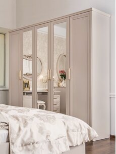 Цвет:кашемир/серебро Спальное место:1800*2000 Материал корпуса:ЛДСП Материал фасадов:МДФ Шкаф:5-створчатый Гарантия:12 месяцев Бренд:Слониммебель