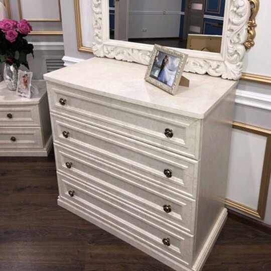 Мебель из коллекции Афина впечатляет изысканностью и элегантностью. Корпус из ламинированной ДСП, итальянский шарм и французское очарование — всё это органично раскрывается в роскошном интерьере спальни.