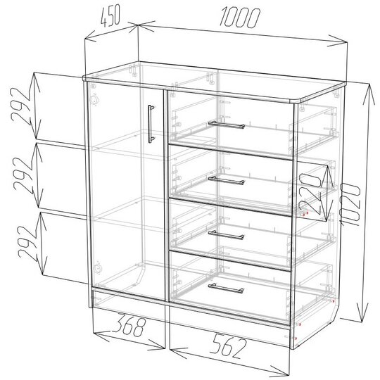 • размер Ш*В*Г/мм/: 1000*1020*450.