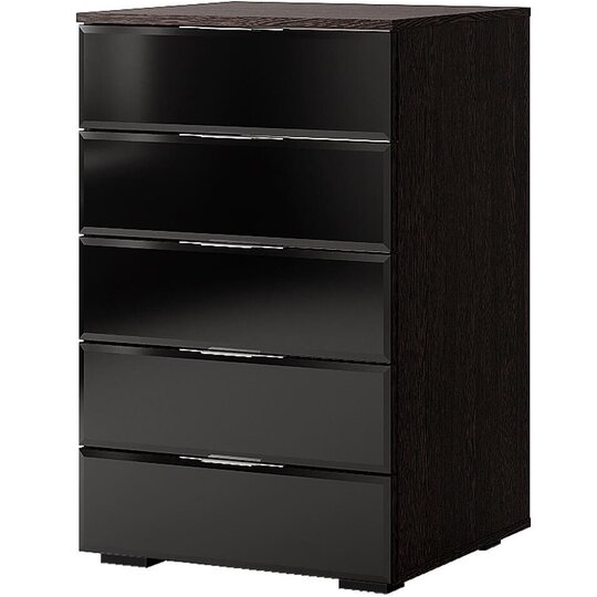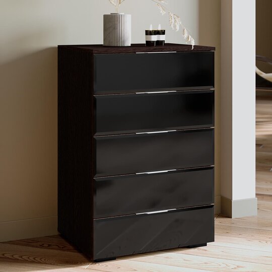 Элегантный современный комод «Алекса» идеально впишется в любой интерьер и сможет служить не только удобной системой хранения для одежды, постельного белья, хозяйственных аксессуаров, но и туалетным столиком или тумбой под телевизор. Комод состоит из пяти вместительных выдвижных ящиков на шариковых направляющих, благодаря которым становится возможным использовать 100% его объема, что невозможно для обычных шкафов.