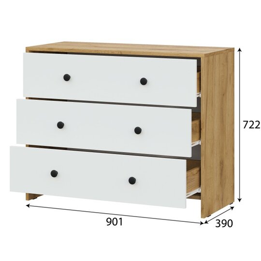 Комод имеет 3 вместительных ящика, где вы сможете удобно расположить свои вещи. Изготовленный из высококачественных материалов, он отличается прочностью и долговечностью.