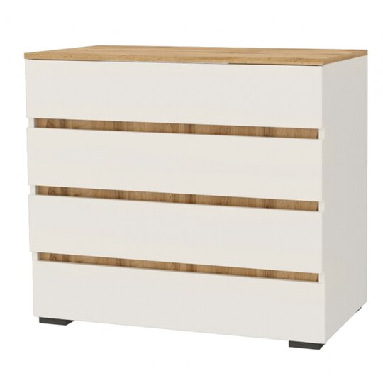 Комод Дубай стильное решение для современного интерьера. Белоснежный фасад, с деталями древесного оттенка создаёт интересное сочетание. У ящиков шариковые направляющие полного выдвижения.