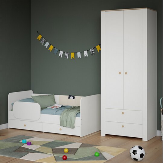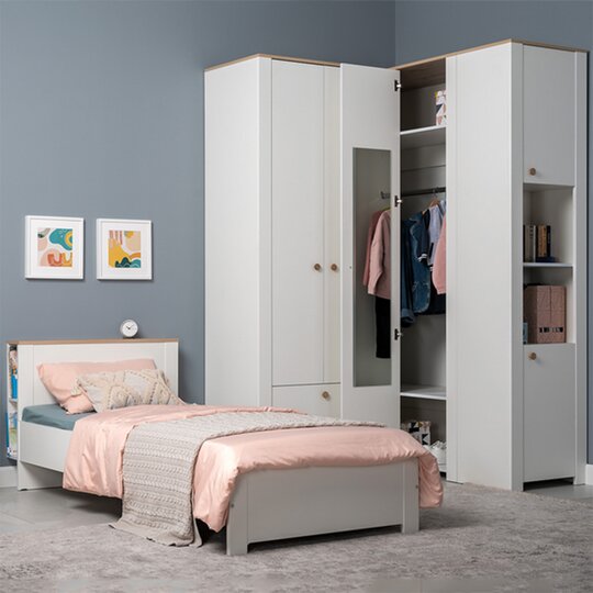 Джастин – новинка в скандинавском стиле. Светлая и лаконичная, она станет не акцентом, а идеальным фоном для жизни, учебы, отдыха и игр. Джастин уникален тем, что подходит для разных возрастных категорий: для малышей – кроватка с защитным бортиком, съемными тканевыми кармашками и выкатными ящиками; для подростков – кровать с полноценным спальным местом и нишей для книг в изголовье; всевозможные модули для хранения. А в ящик письменного стола можно спрятать под замочек свои сокровища и секреты.
