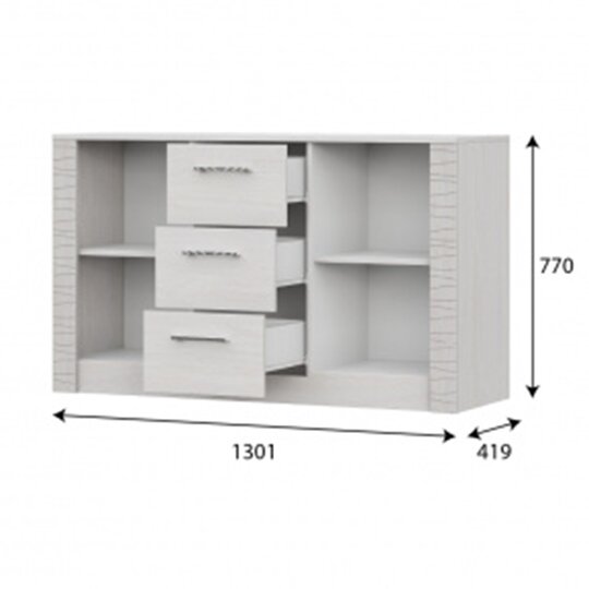 Ширина мм:1301 Высота мм:770 Глубина мм:419 Цвет:ясень анкор светлый/сандал светлый Материал корпуса:ЛДСП Материал фасадов:МДФ Гарантия:12 месяцев Бренд:SV-Мебель