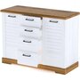 В комоде два отдела с полками и 4 ящика. Шариковые направляющие надежно удерживают ящики при открывании. Сочетается с зеркалом из этой коллекции.