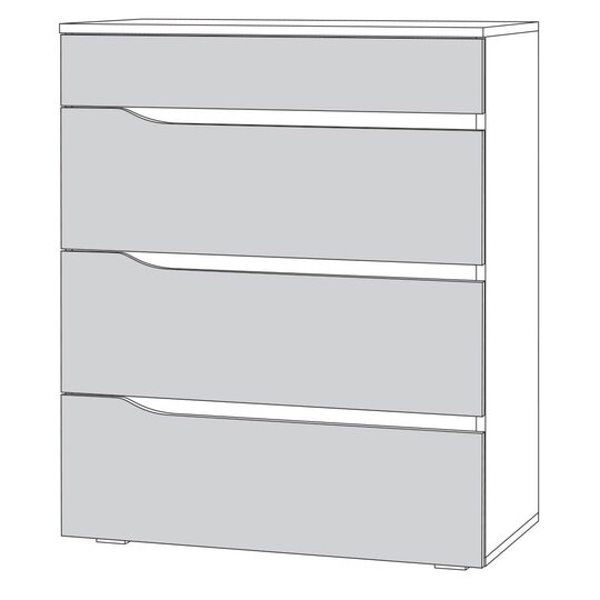 Комод Муссон- с четырьмя выдвижными ящиками. Ручками выступают вырезы в фасадах. Для открывания ящиков используются шариковые направляющие полного выдвижения. Комод имеет регулируемые пластиковые опоры.