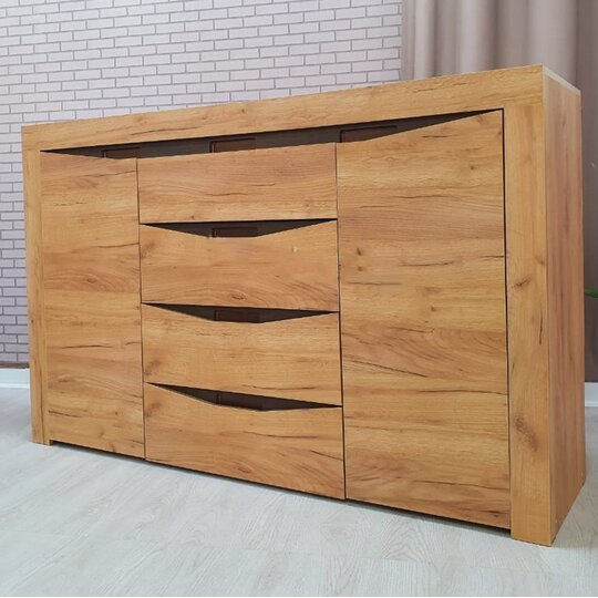 Ширина мм:1600 Высота мм:1006 Глубина мм:436 Цвет:дуб крафт золотой Материал корпуса:ЛДСП Материал фасадов:ЛДСП Гарантия:12 месяцев Бренд:СтендМебель