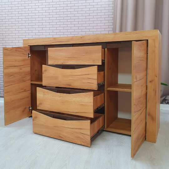 Комод — привлекательное и практичное дополнение вашего дома. Сдержанный, современный стиль исполнения модели позволит изделию гармонично смотреться в рамках любого современного интерьера. Функциональную систему хранения комода представляют 4 выдвижных ящика и 2 дверки.