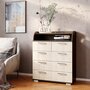 Комод Стандарт №1 отличается своей практичностью. Наряду с выдвижными ящиками, он имеет открытую полку,  расположенную сверху, значит у вас появится дополнительное место для хранения вещей, ширина комода – 800 мм и для облегчения открывания нижние выдвижные ящики оснащены одновременно двумя ручками геометрической формы, верхний – разделен на две секции для более удобного хранения, сочетание в модели Стандарт №1 корпуса цвета венге и фасадов в светлом оттенке лоредо позволит комоду украсить любой интерьер.