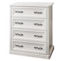 Комод Мишель- компактный высокий комод традиционного дизайна с четырьмя выдвижными ящиками на массивном основании. Ящики, с элегантно фрезерованными рамочными фасадами, декорированы витиеватыми металлическими ручками.