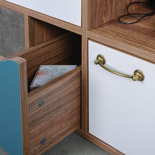 Комод Вайс сочетает в себе нежные, тёплые цвета и строгие геометрические формы. Станет ярким дополнением для любого пространства. Сборка не универсальная собирается открытой нишей с левой стороны.