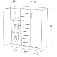Ширина мм:1020 Высота мм:1200 Глубина мм:450 Цвет:дуб сонома Материал корпуса:ЛДСП Материал фасадов:ЛДСП Гарантия:12 месяцев Бренд:Пирамида
