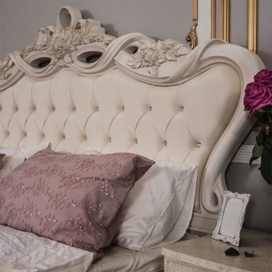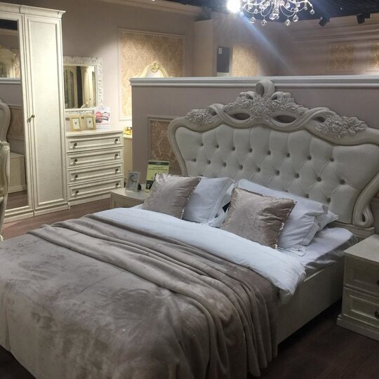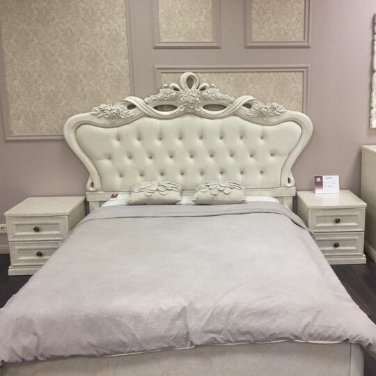 Производитель внимателен к деталям — это подчеркивается великолепной пластикой линий и мягким патинированием. Кровать смотрится эстетично, нарочитые украшения отсутствуют. Интерьер с мебелью Афина выглядит как единая композиция — стильно и гармонично.